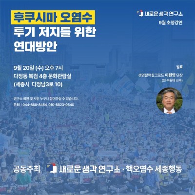 이원영 생명탈핵실크로드 단장, 20일'세종 새로운생각연구소' 초청강연"전 세계에 악영향을 끼치는 중대한 문제는국민투표를 꼭 진행해 사전에 방지돼야 한다""UN보다 더 촘촘히 엮인 …