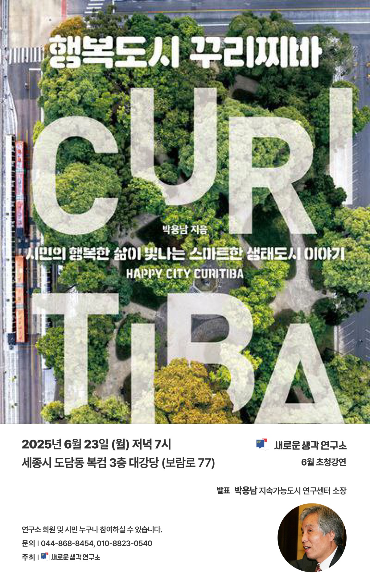 새로운 생각 연구소(이하 새로운 생각’)623() 저녁7시에 세종시 도담동 복합커뮤니티센터 3층 대강당에서 6월 초청강연회를 개최한다. ‘새로운 생각은 지난 해 123일 윤석열 전 대통령의 불법 계엄 선포 이후 모든 공식 일정을 중단하고 헌정질서 수호를 위한 세종시 시민사회 연대 활동에 집중해왔는데, 이번 강연회로 공식 활동을 재개한다.